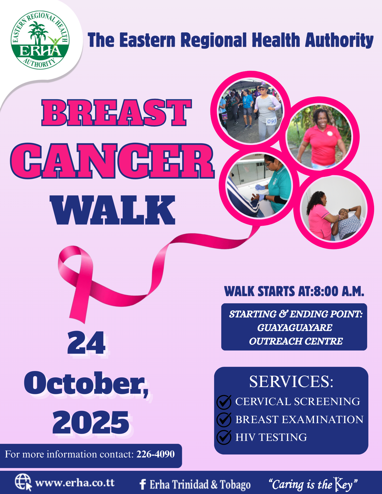 The Eastern Regional Health Authority (ERHA) invites you to our Breast Cancer Walk on: