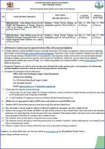 By onikkaraphaelApril 10, 2026News and Events, Tender Notices The Eastern Regional Health Authority invites Tenders for the following: