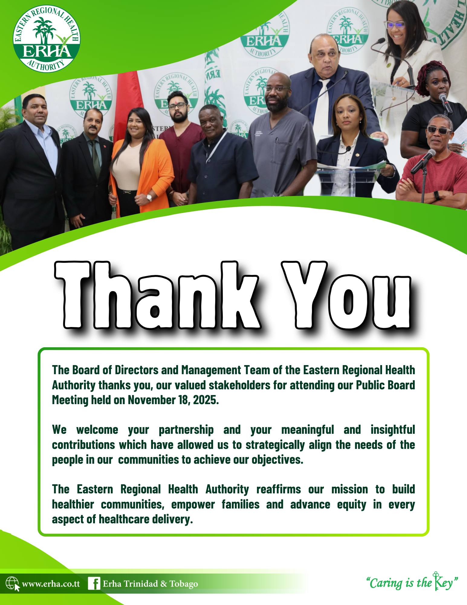 The Board of Directors and Management Team of the Eastern Regional Health Authority thanks, our valued stakeholders for attending our Public Board Meeting held on November 18, 2025.